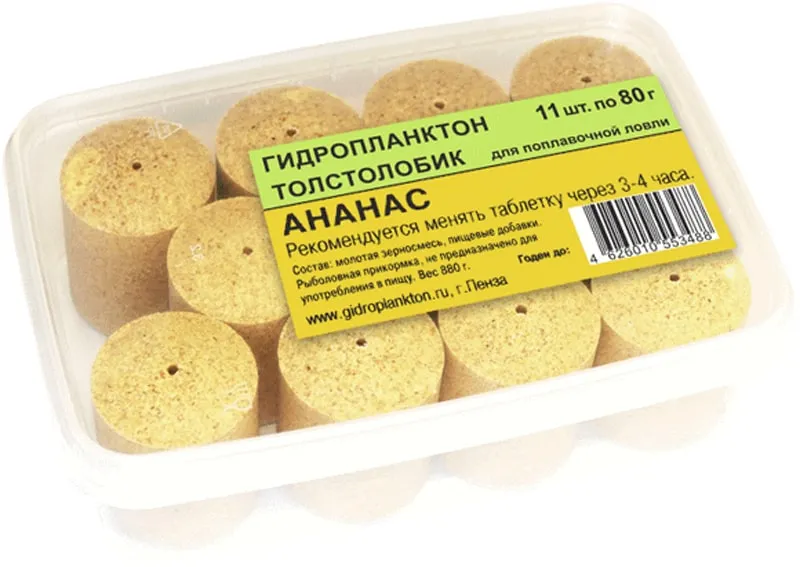 Гидропланктон Толстолобик 80г в контейнере 11 табл (Ананас)