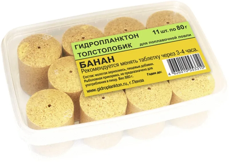 Гидропланктон Толстолобик 80г в контейнере 11 табл (Банан)