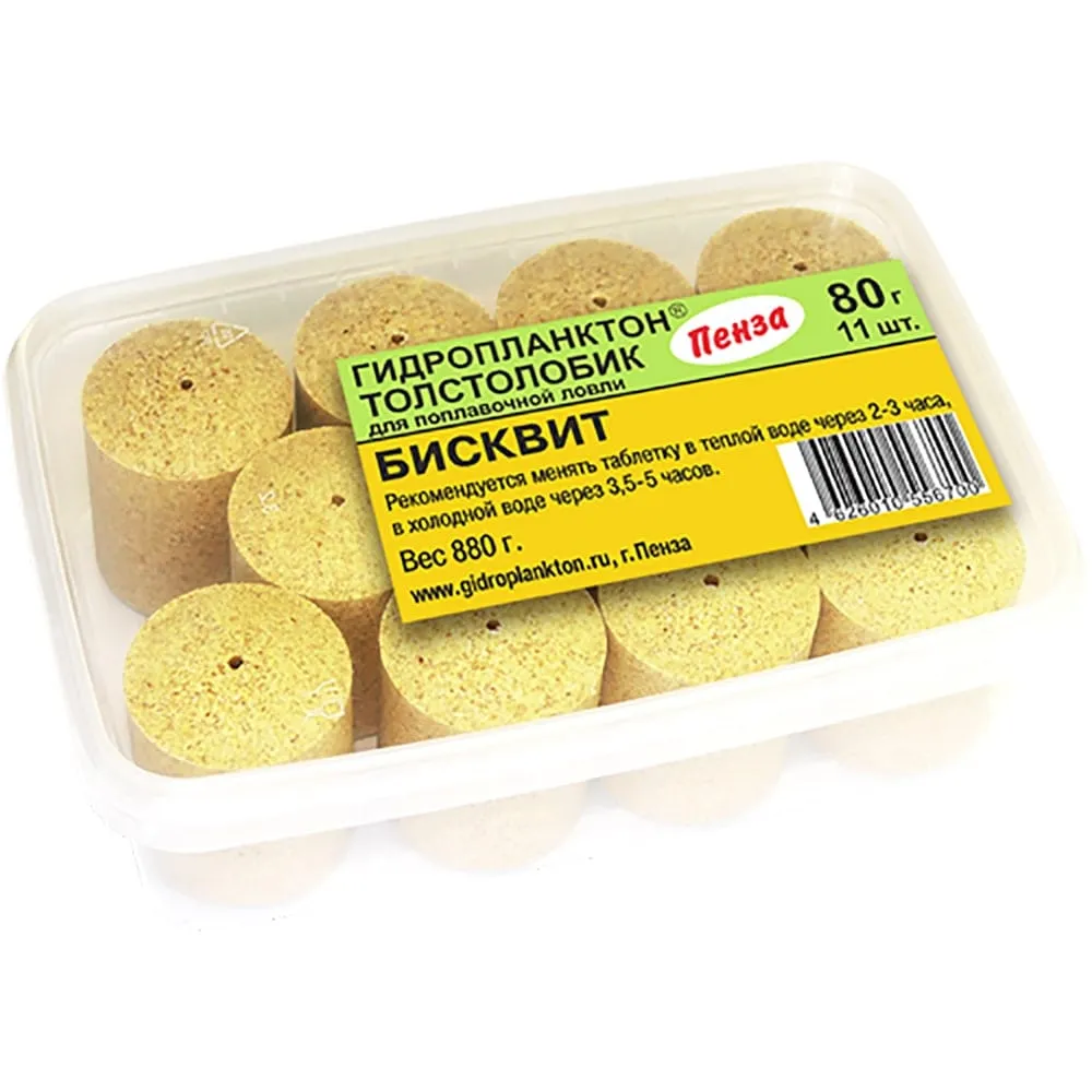Гидропланктон Толстолобик 80г в контейнере 11 табл (Бисквит)