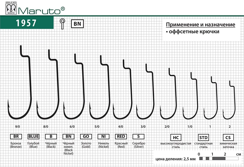 Крючки Maruto 1957 BN № 2/0 (5 шт.) офсетный
