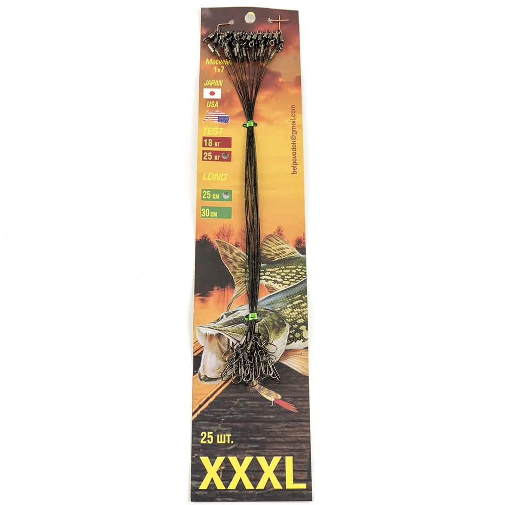 Набор поводков (материал Япония) 1х7 XXXL- 18 кг планшет 25 шт - 25 см