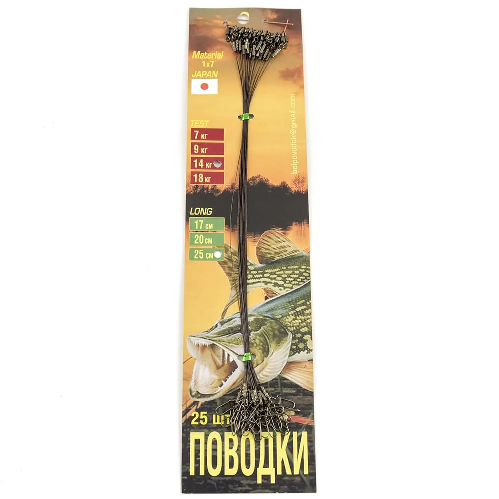 Набор поводков (материал Япония) 1х7 - 14 кг планшет 25 шт - 25 см