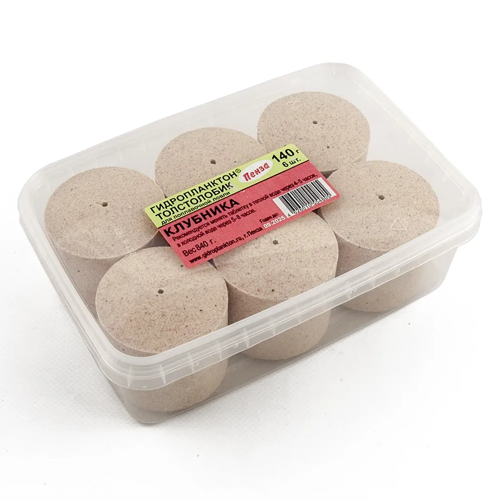 Гидропланктон Толстолобик 140г в контейнере 6 табл (Клубника со сливками)