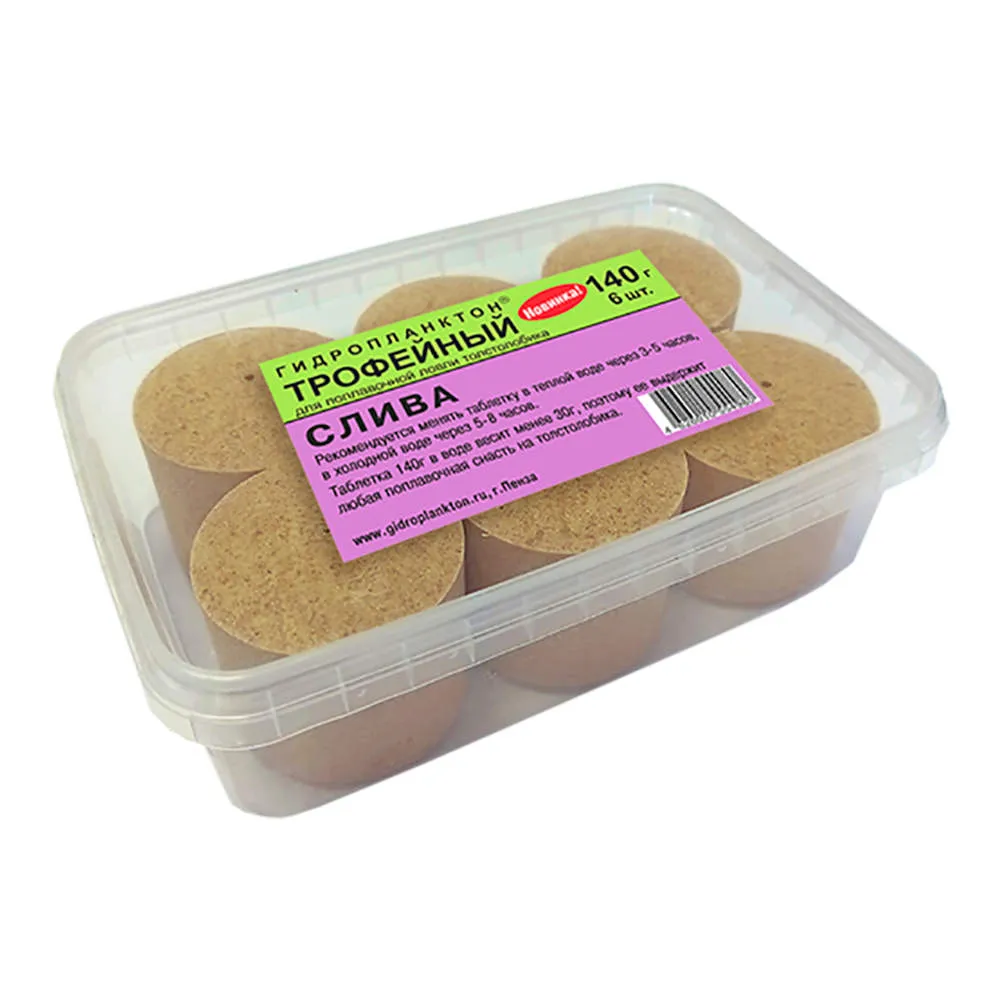 Гидропланктон Толстолобик 140г в контейнере 6 табл (Слива)