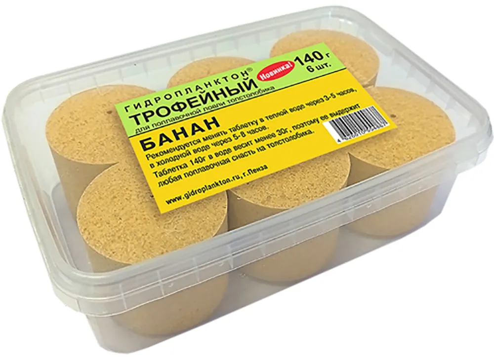 Гидропланктон Толстолобик 140г в контейнере 6 табл (Банан)